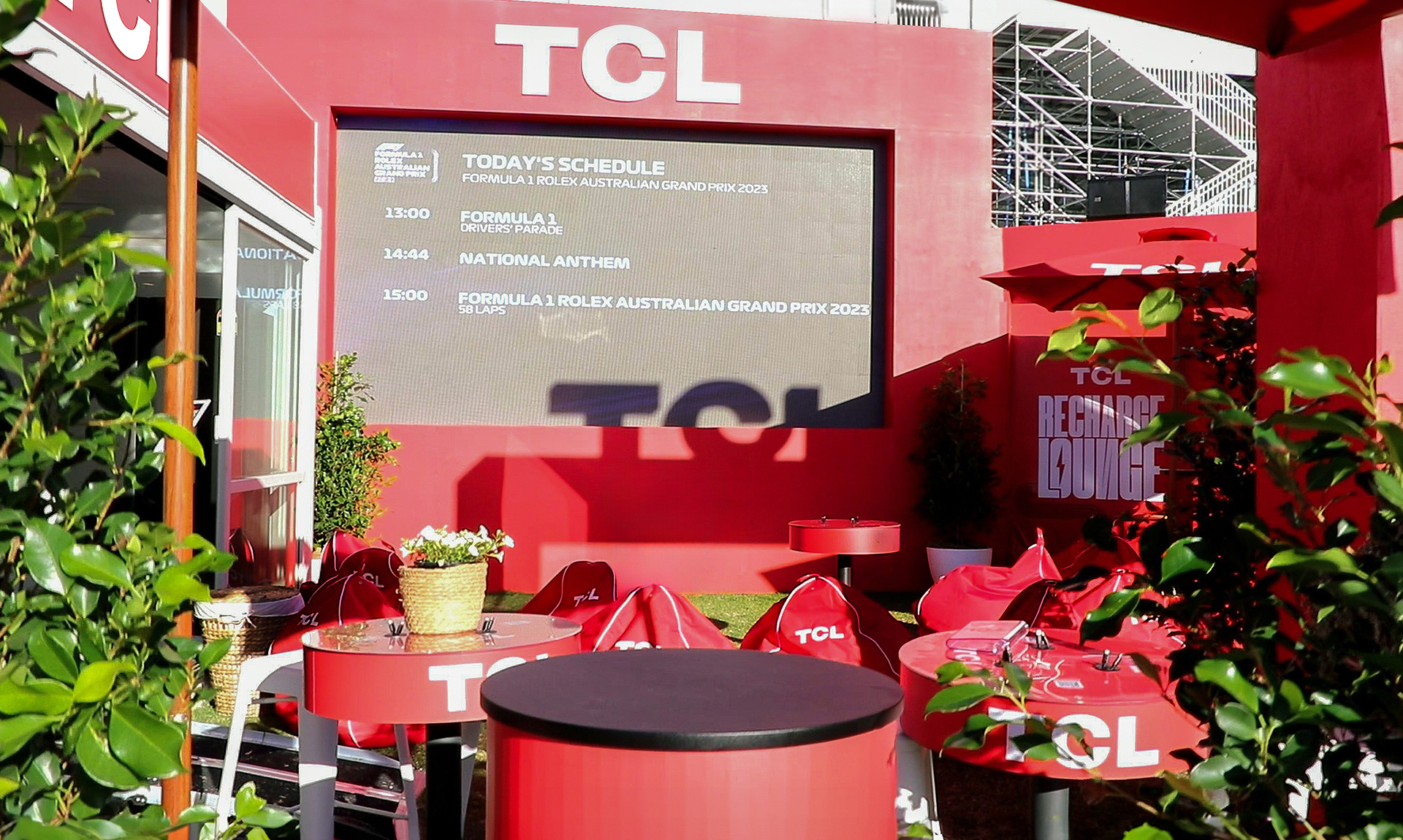 TCL had the opportunity to be a part of the Fan Zone at the FORMULA 1 ROLEX AUSTRALIAN GRAND PRIX 2023. The TCL Recharge Lounge was a dedicated zone giving F1® fans the opportunity to sit back, relax and recharge their devices, all without missing a moment of on-track action.